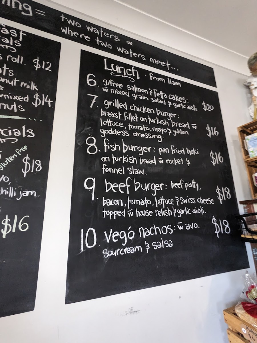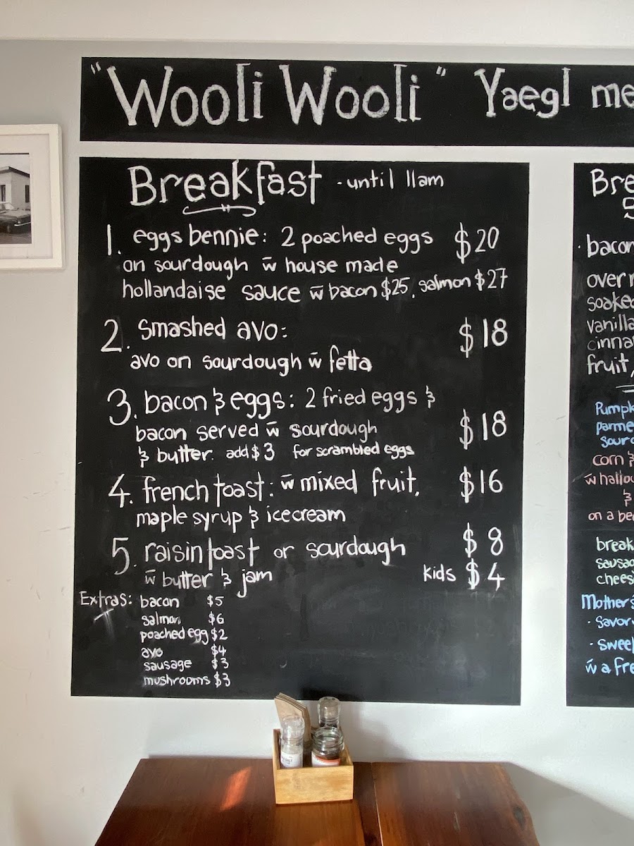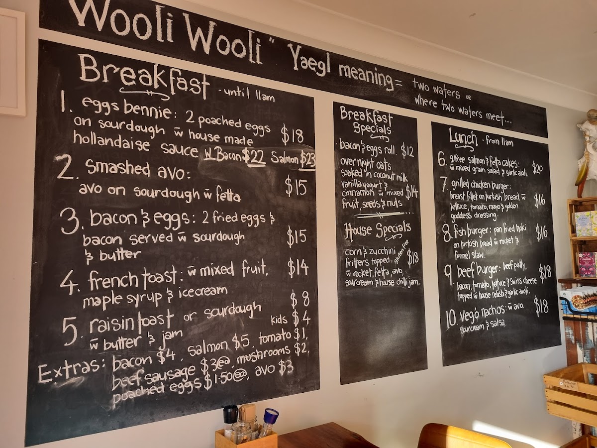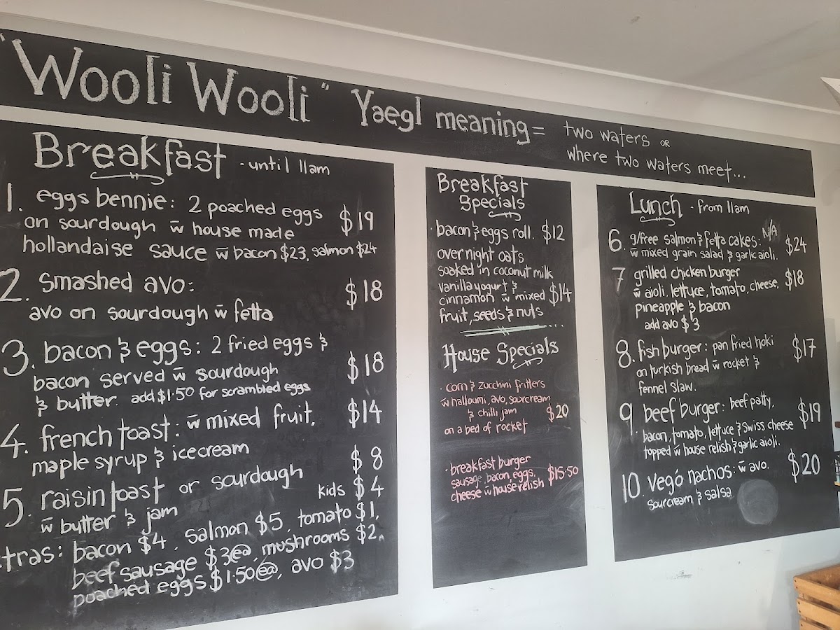 The menu is structured into clear sections to cater to different meal times and preferences, including breakfast dishes, lunch meals, and various hot and cold beverages. This allows visitors to quickly identify suitable options whether they are stopping in for a morning meal, a casual lunch, or a coffee break.